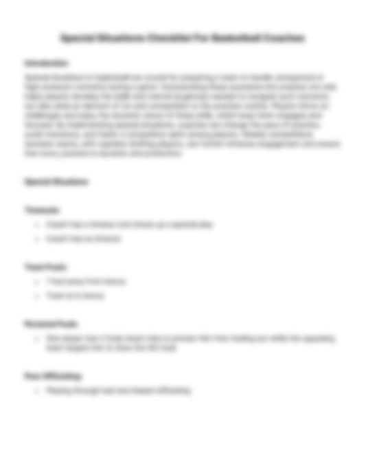 Special Situations Checklist For Basketball Coaches